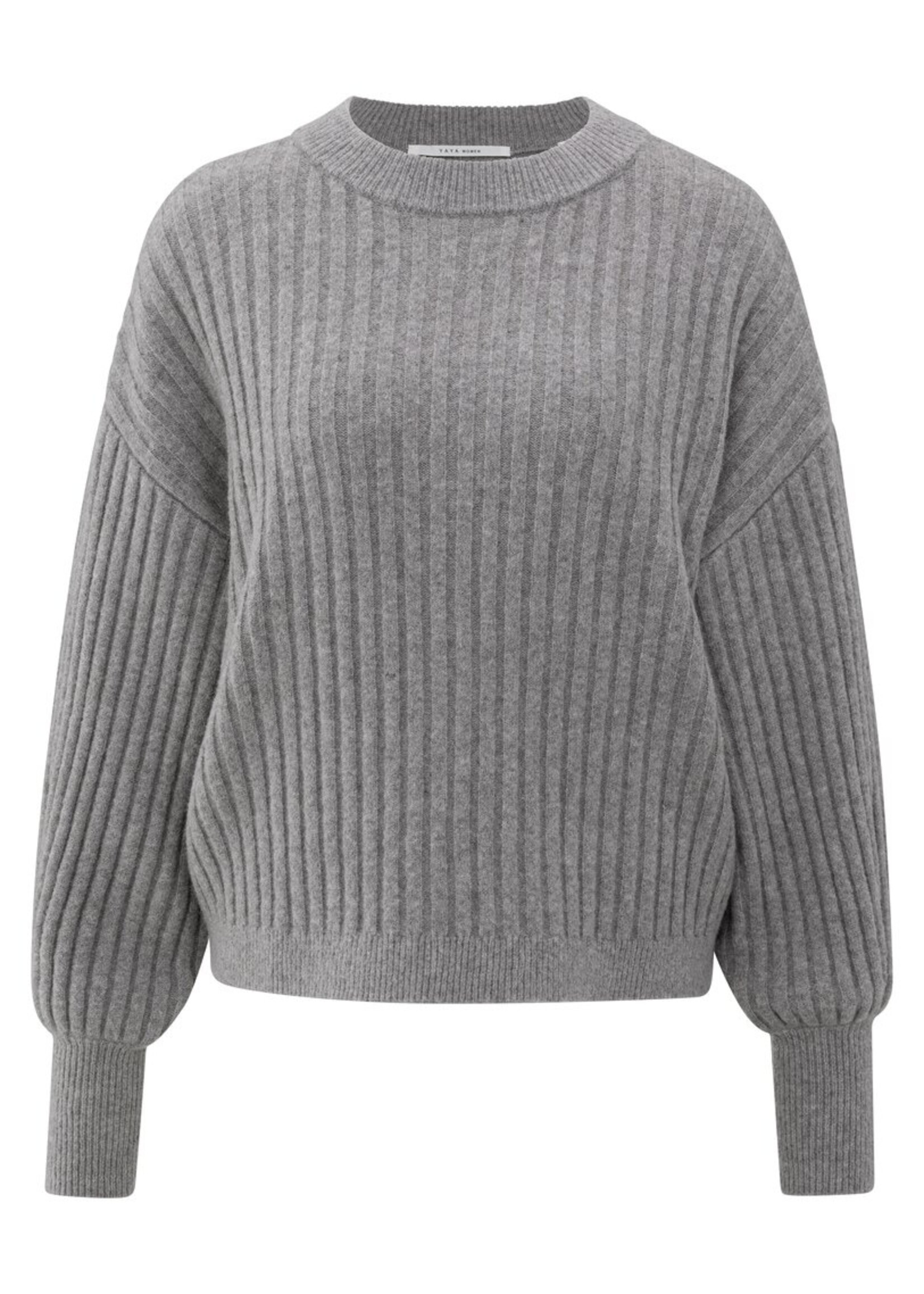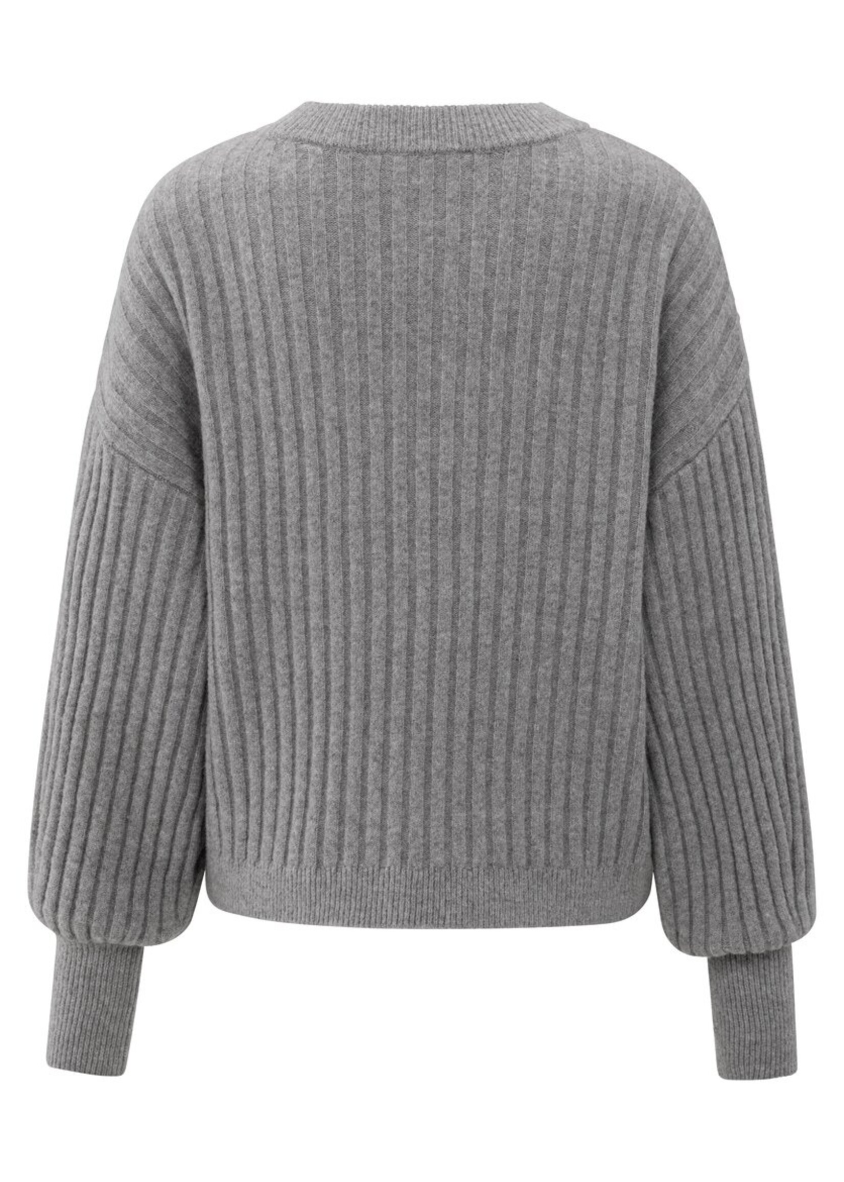 Yaya, Geribde trui met ronde hals, Taupe grey, Size: